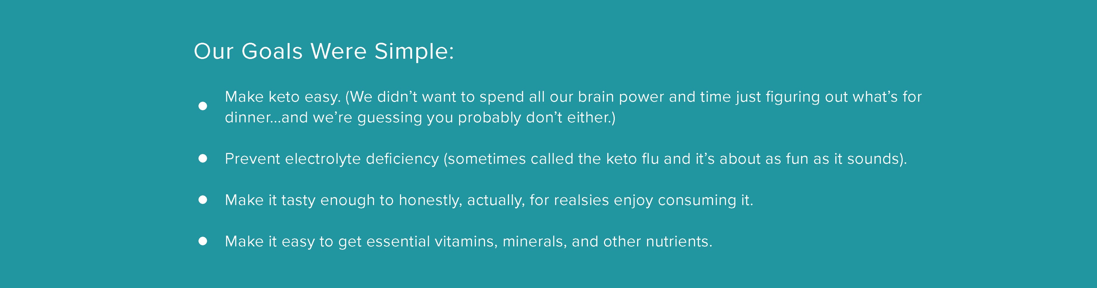Our first introduction to the ketogenic diet was when our oldest son started having seizures. As we followed the medical advice that was given to us, we were introduced to keto as a potential last-ditch effort to treat these seizures if medication was not successful. We finally found a medication that helped our son, and we all but forgot about the ketogenic diet until years later when Chris decided to lose weight. As we started keto (Chris first and then later Miriam), we quickly realised how effective it was (it was the only thing we tried that had any lasting effect on our health), but it was daunting and time consuming. Even though we researched as much as possible, we still made mistakes like not getting enough electrolytes, and using a meal replacement shake that was loaded with coconut flour, chia seeds, and other gritty stuff. (0/10 would not recommend.) We wanted to make it easier.
