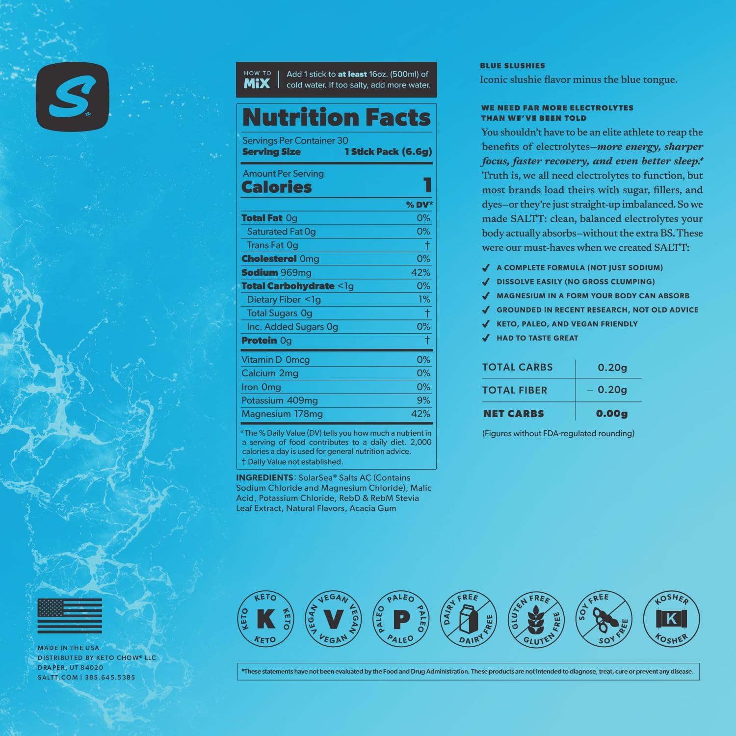 SALTT Blue Slushies - Electrolyte Powder Drink Mix - 30 Pack and Single Stick Options